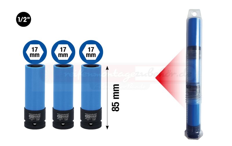 1/2" Alu-Felgen Kraft-Stecknuss,lang,17mm 3x 515.1073 in Kunststoffrohr