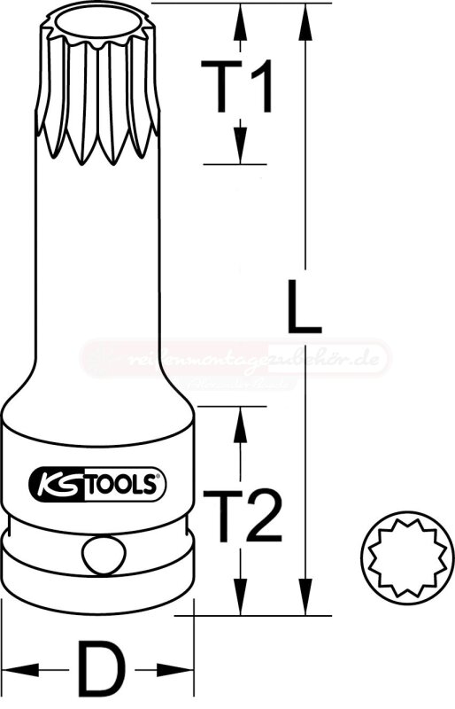 1/2" Spezial-Kraft-Bit-Stecknuss Vielzahn (XZN), 72mm, M12