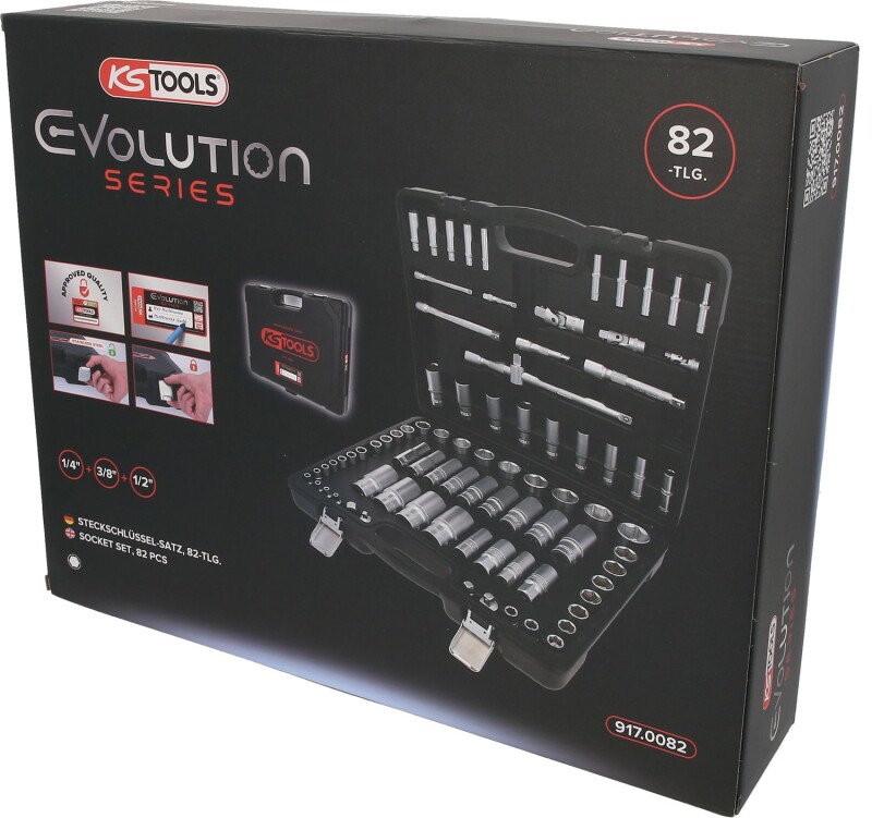 1/4"+3/8"+1/2" Steckschlüssel-Satz, 82-tlg, Zollmaße