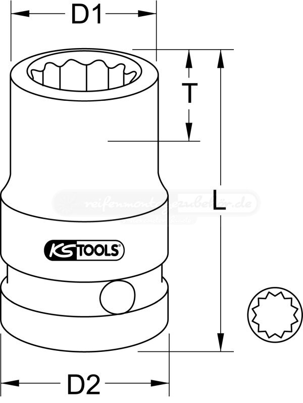 3/8" 12-kant-Kraft-Stecknuss, kurz, 14mm