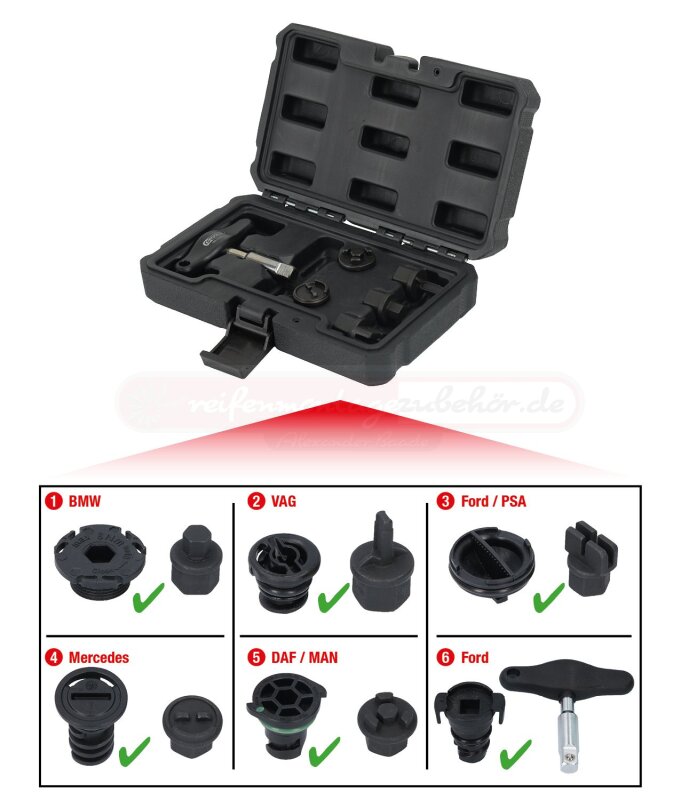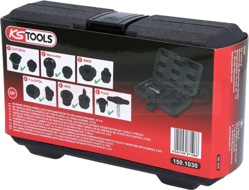 3/8" Öldienst-Spezialprofil-Satz für Kunststoff-Ölablassschrauben, 6-tlg
