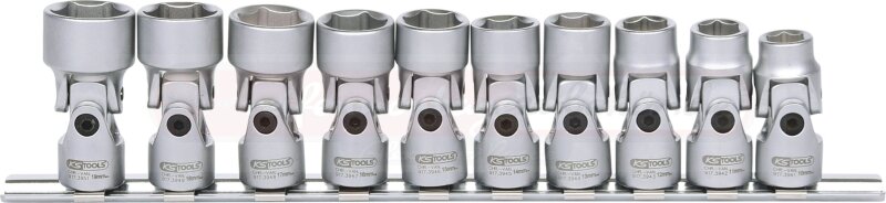 3/8" Sechskant-Stecknuss-Satz mit Gelenk, 10-tlg10-19mm