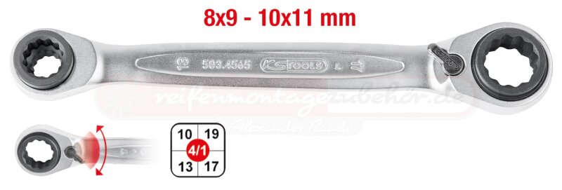 4 in 1 GEARplus® Doppel-Ratschenringschlüssel, umschaltbar, 8x9x10x11mm