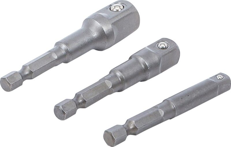 Adapter-Satz für Bohrmaschinen | Außensechskant Antrieb 6,3 mm (1/4") | Abtrieb Außenvierkant 6,3 mm (1/4"), 10 mm (3/8"), 12,5 mm (1/2") | 3-tlg.