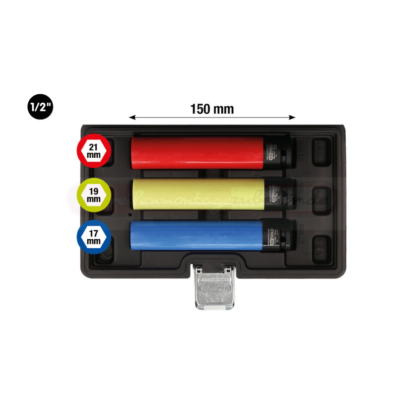 Alu-Felgen Kraft-Stecknuss-Satz, extra lang, 3-tlg, 1/2", 17, 19, 21 mm