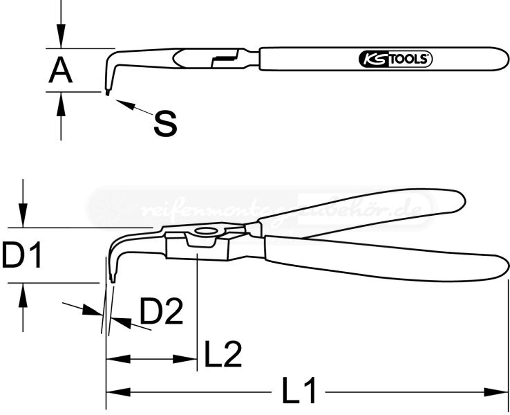 Aussen-Sicherungszange, abgewinkelt, 40-100 mm