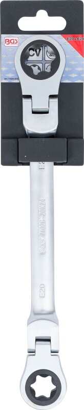 Doppel-Ratschen-Ringschlüssel | abwinkelbar | mit E-Profil Ringköpfen | SW E20 x E24