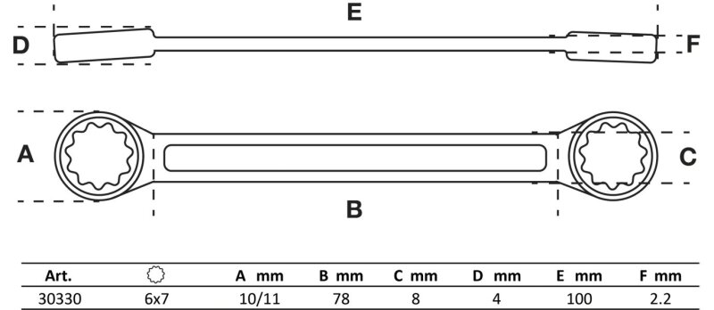 Doppel-Ringschlüssel | extra flach | SW 6 x 7 mm