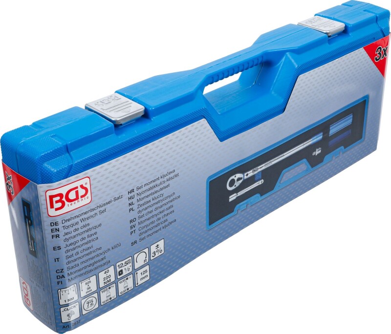 Drehmomentschlüssel-Satz | mit Adapter + Verlängerung | Abtrieb Außenvierkant 12,5 mm (1/2") | 40 - 220 Nm | 3-tlg.
