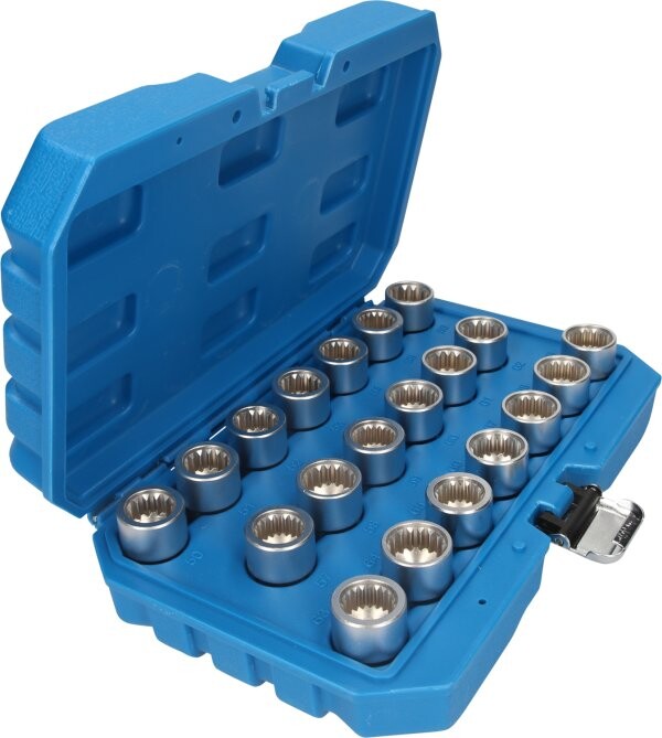 Porsche BT691330 enthält 20 wesentliche Radmutter-Löseschlüssel zum beschädigungsfreien Öffnen von werksseitigen Felgenschlössern. Mit den Profilen ABC-50, ABC-51, ABC-52, ABC-53, ABC-54, ABC-55, ABC-56, ABC-57, ABC-58, ABC-59, ABC-60, ABC-61, ABC-62, ABC-63, ABC-64, ABC-65, ABC-66, ABC-67, ABC-68, ABC-69 ist er für