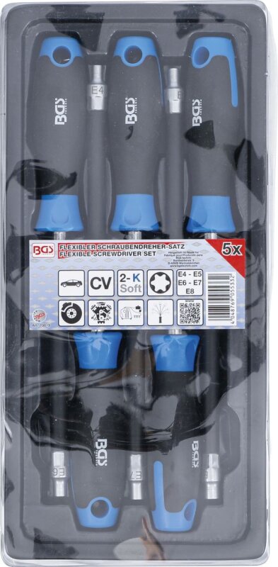 Flexibler Schraubendreher-Satz mit Rundgriff | E-Profil E4 - E8 | Klingenlänge 150 mm | 5-tlg.