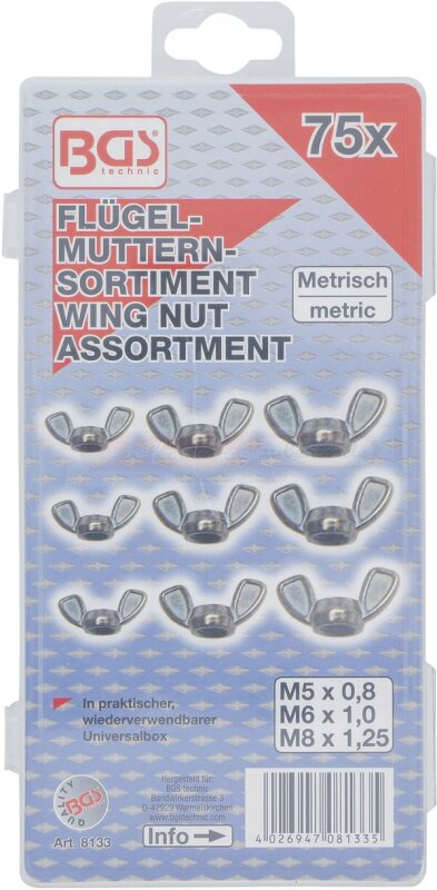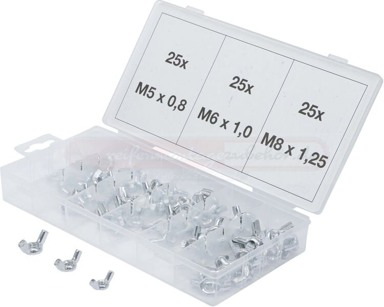 Flügelmuttern-Sortiment | 75-tlg.