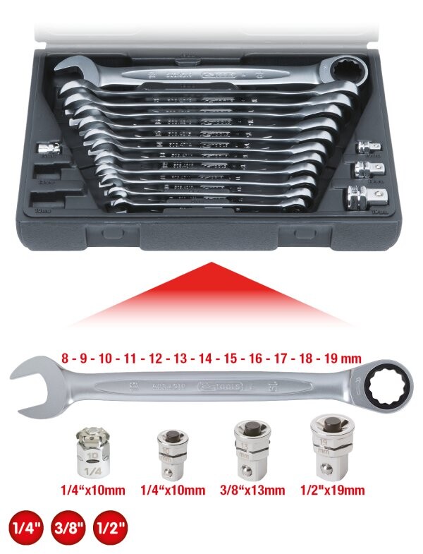 GEARplus Ratschenringmaulschlüssel-Satz, 16-tlg