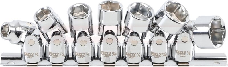 Gelenk-Steckschlüssel-Satz, Sechskant | Antrieb Innenvierkant 10 mm (3/8") | SW 3/8" - 3/4" | Zollgrößen | 7-tlg.