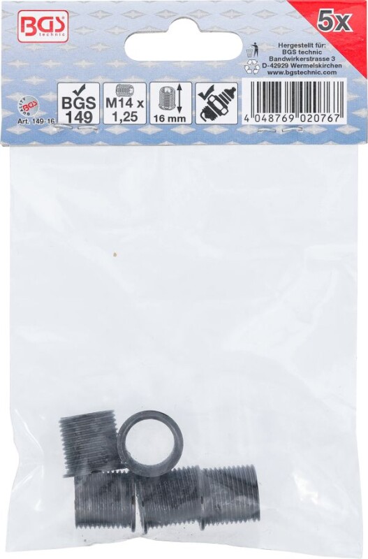 Gewindehülsen | 16 mm | M14 x 1,25 mm | 5-tlg.