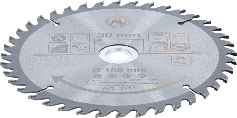 Hartmetall-Kreissägeblatt | Ø 180 x 30 x 2,5 mm | 40 Zähne