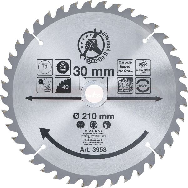 Hartmetall-Kreissägeblatt | Ø 210 x 30 x 2,6 mm | 40 Zähne