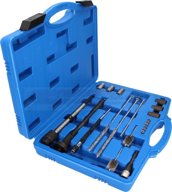 - inklusive 4 Reinigungsbürsten, Bürstenhalter, 3 Injektorsitzfräser, Fräserführung, Dichtring-Auszieher und Bürstenhalter-Verlängerung