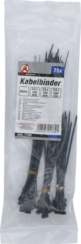 Kabelbinder-Sortiment | schwarz | 100 - 200 mm | 75-tlg.