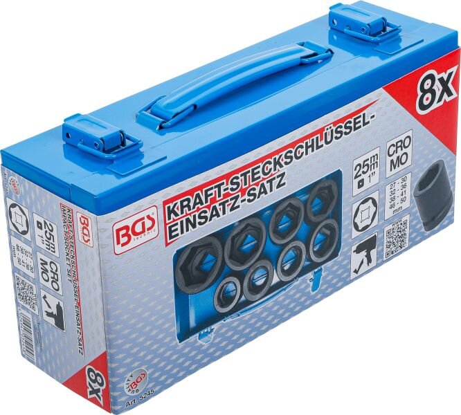 Kraft-Steckschlüssel-Einsatz-Satz Sechskant | Antrieb Innenvierkant 25 mm (1") | SW 27 - 50 mm | 8-tlg.