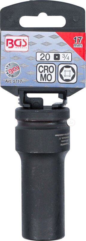 Kraft-Steckschlüssel-Einsatz Sechskant, tief | Antrieb Innenvierkant 20 mm (3/4") | SW 17 mm