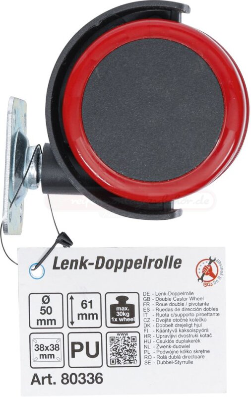 Lenk-Doppelrolle | rot/schwarz | 50 mm