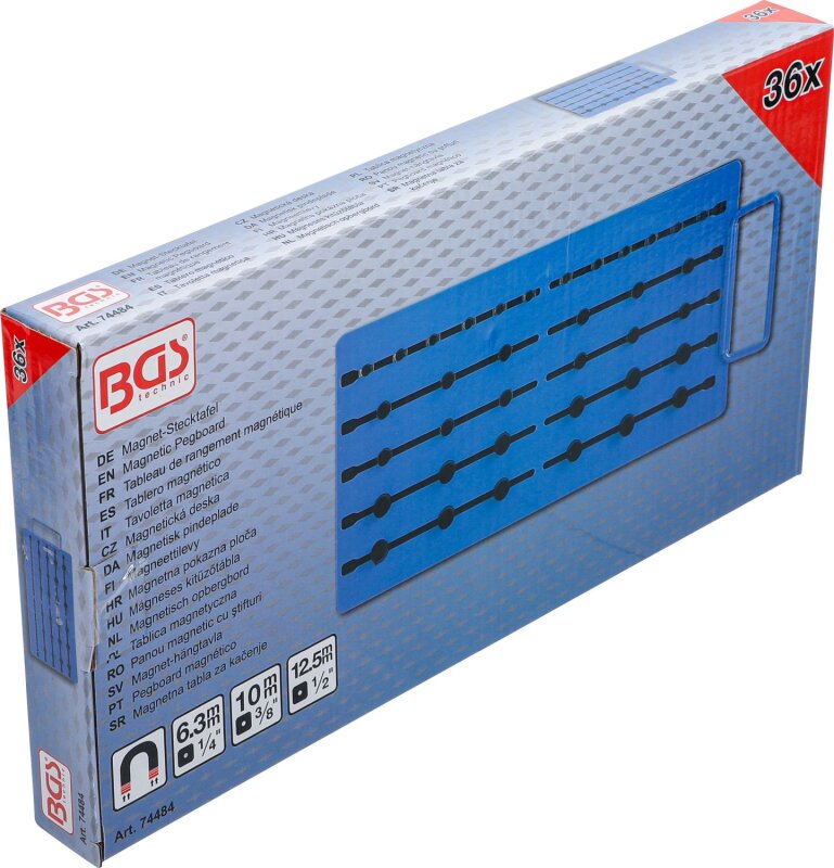Magnet-Stecktafel | mit Außenvierkant | für 36 Steckschlüssel-Einsätze | Antrieb 6,3 mm (1/4"), 10 mm (3/8"), 12,5 mm (1/2")