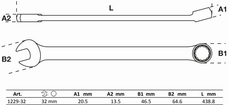 Maul-Ringschlüssel, extra lang | SW 32 mm