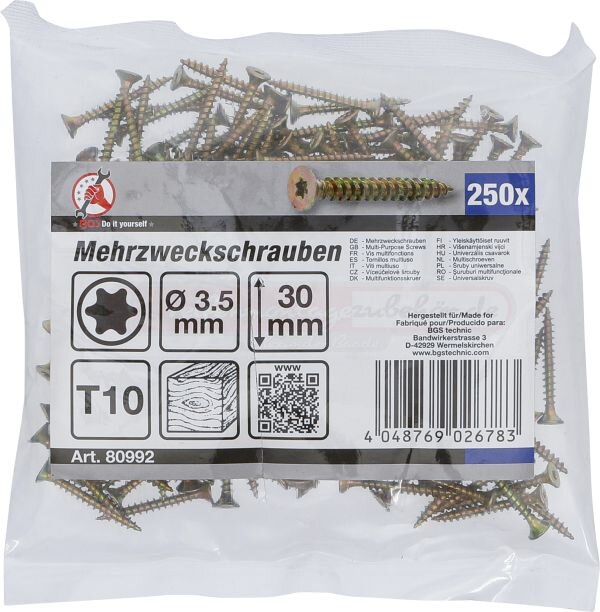 Mehrzweckschrauben | T-Profil (für Torx) T10 | 3,5 x 30 mm | 250 Stück