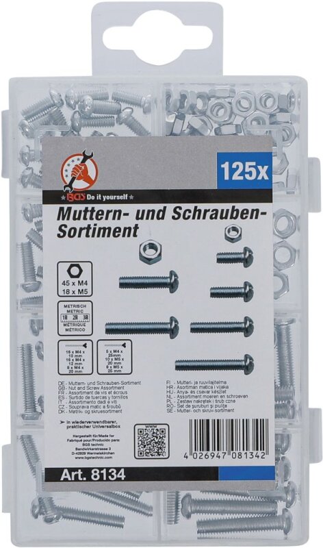 Muttern- und Schrauben-Sortiment | metrisch | M4 / M5 | 126-tlg.