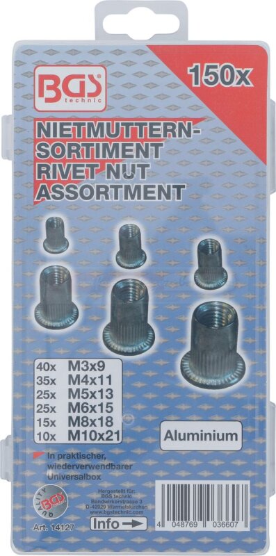 Nietmuttern-Sortiment | Aluminium | 150-tlg.