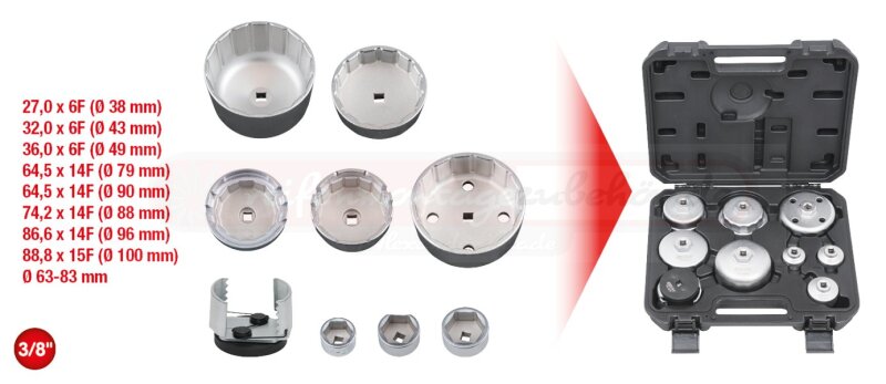 Öldienstschlüssel-Satz für Ölfilter- und Filtergehäusedeckel, 9-tlg