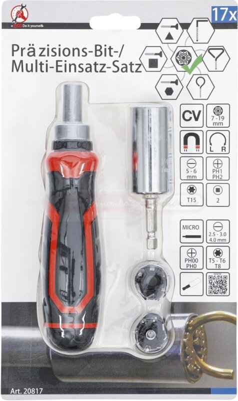Präzisions-Bit- / Multi-Einsatz-Satz | mit Ratschen-Drehgriff für Bits, umschaltbar | 17-tlg.