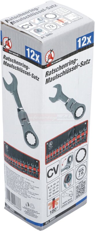 Ratschenring-Maulschlüssel-Satz | extra kurz | SW 8 - 19 mm | 12-tlg.