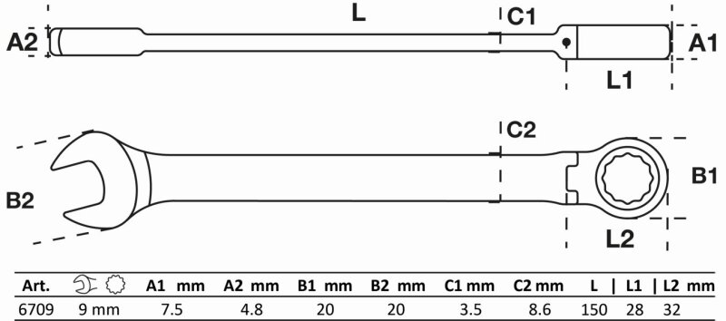 Ratschenring-Maulschlüssel | abwinkelbar | SW 9 mm