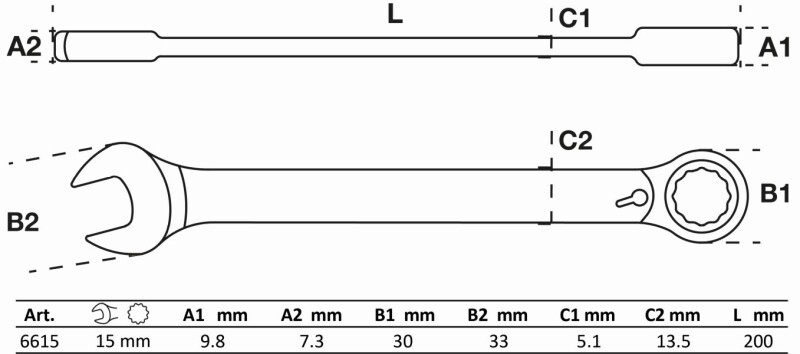 Ratschenring-Maulschlüssel | umschaltbar | SW 15 mm
