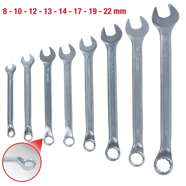 Ringmaulschlüssel-Satz, 8-tlg gekröpft, 8-22mm