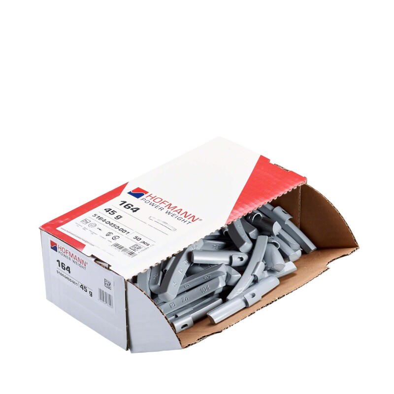 Das Hofmann Power Weight Schlaggewicht des Modells Typ 164 aus Zink (pulverbeschichtet) in der Grammatur 45g ist geeignet für PKW, Transporter-Stahlfelgen mit folgender Spezfikation:
