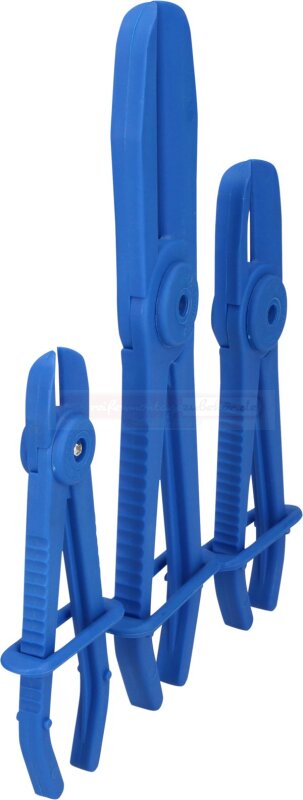 Der BRILLIANT TOOLS Schlauch-Abklemm-Zangen-Satz BT521010 ist zum einfachen Abklemmen von flexiblen Schlauchleitungen geeignet. Der Schlauch wird breitflächig gegen die stabile Auflagefläche gequetscht, eine Beschädigung des Schlauches wird so vermieden und der Durchfluss wird gänzlich gestoppt. Die Zangen sind ideal bei Wartungsarbeiten mit Benzin, Öl, Wasser und Kühlerfrostschutzmittel. Mittels des verstellbaren Arretierrings mit Rastfunktion können die Zangen am Einsatzort fixiert werden.