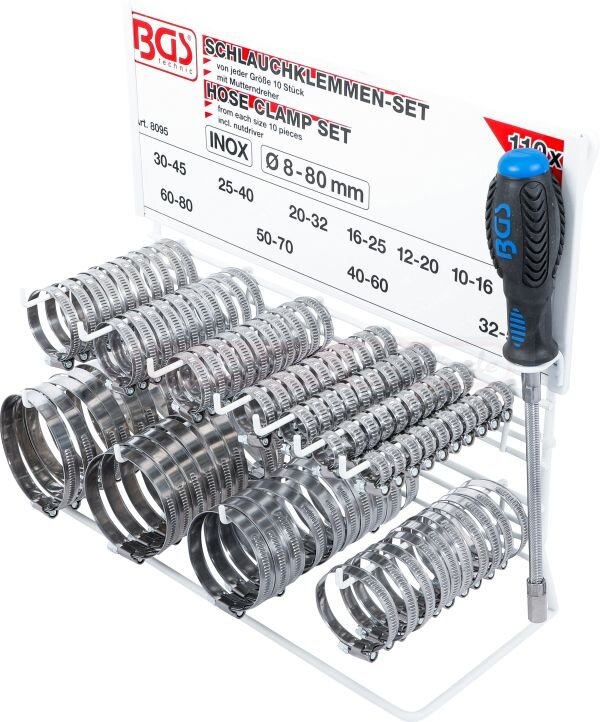 Schlauchklemmen-Sortiment | rostfrei | auf Tafel | 111-tlg.