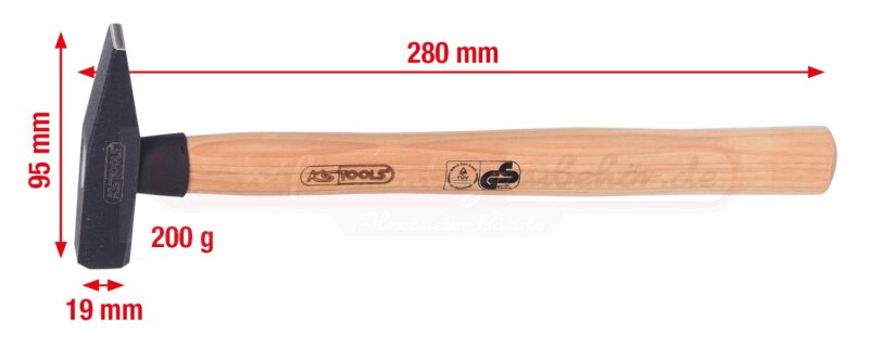 Schlosserhammer mit Hickorystiel, 200g