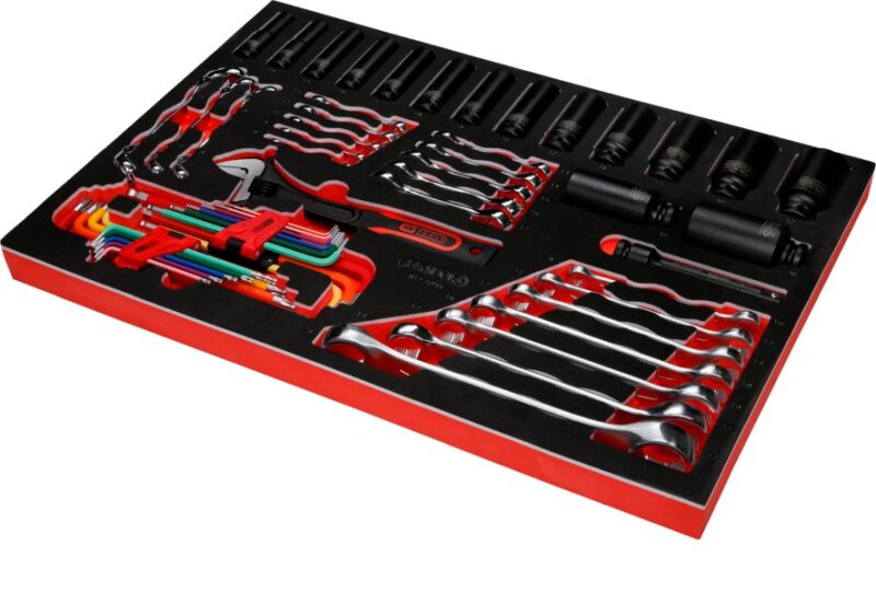 Schraubenschlüssel- / und Kraft-Stecknuss-Satz in Schaumstoffeinlage, 55-tlg