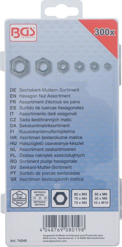 Sechskant-Muttern-Sortiment | Edelstahl | 300-tlg.