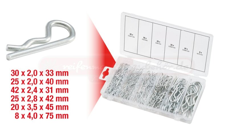 Sortiment Federsplinte, 1,8x33 - 3,9x75, 150-tlg