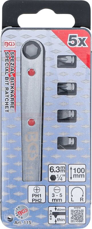 Spezial-Bitknarre, ultra dünn | Abtrieb Innensechskant 6,3 mm (1/4") | inkl. 4 Spezial-Bits