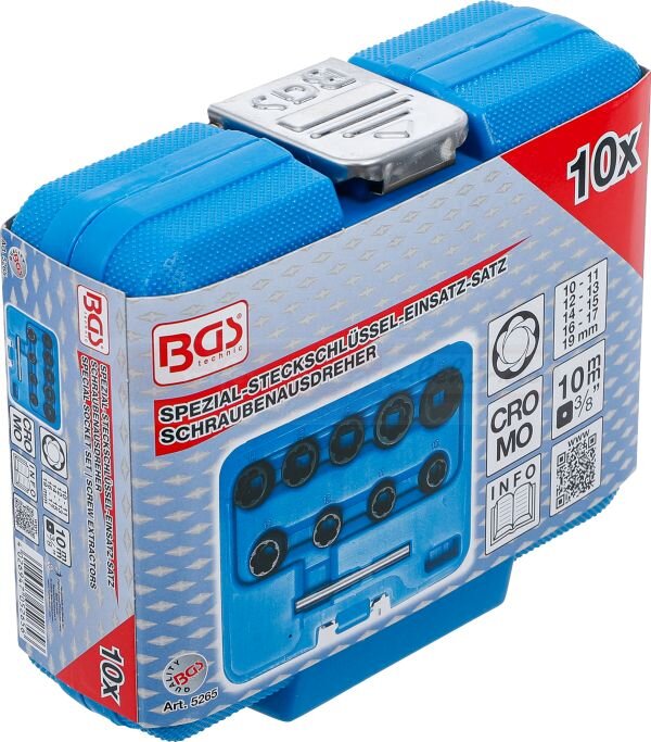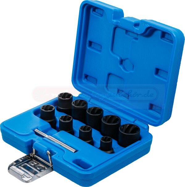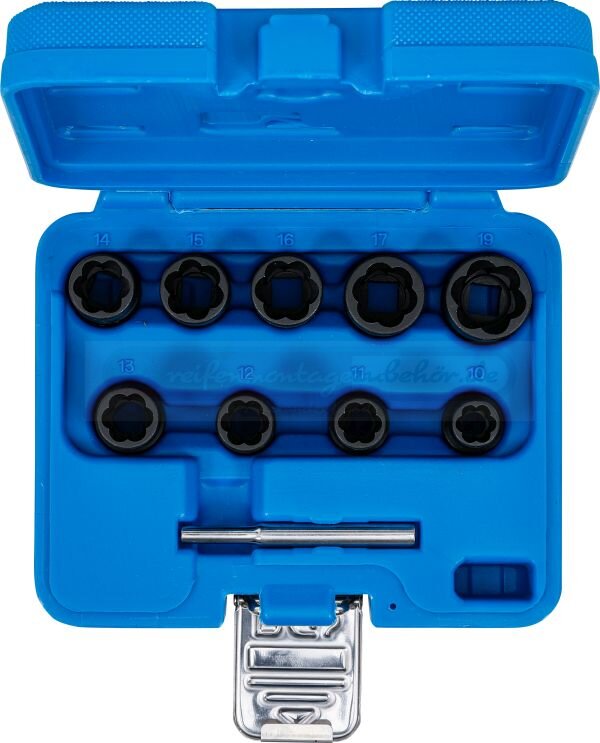 Spiral-Profil-Steckschlüssel-Satz / Schraubenausdreher | Antrieb Innenvierkant 10 mm (3/8") | SW 10 - 19 mm | 10-tlg.