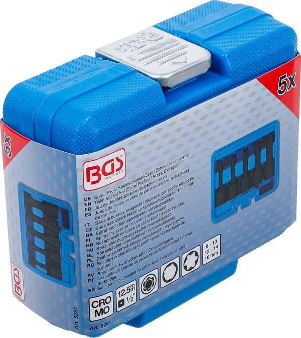 Spiral-Profil-Steckschlüssel-Satz / Schraubenausdreher | Antrieb Innenvierkant 12,5 mm (1/2") | SW 8 - 16 mm | 5-tlg.
