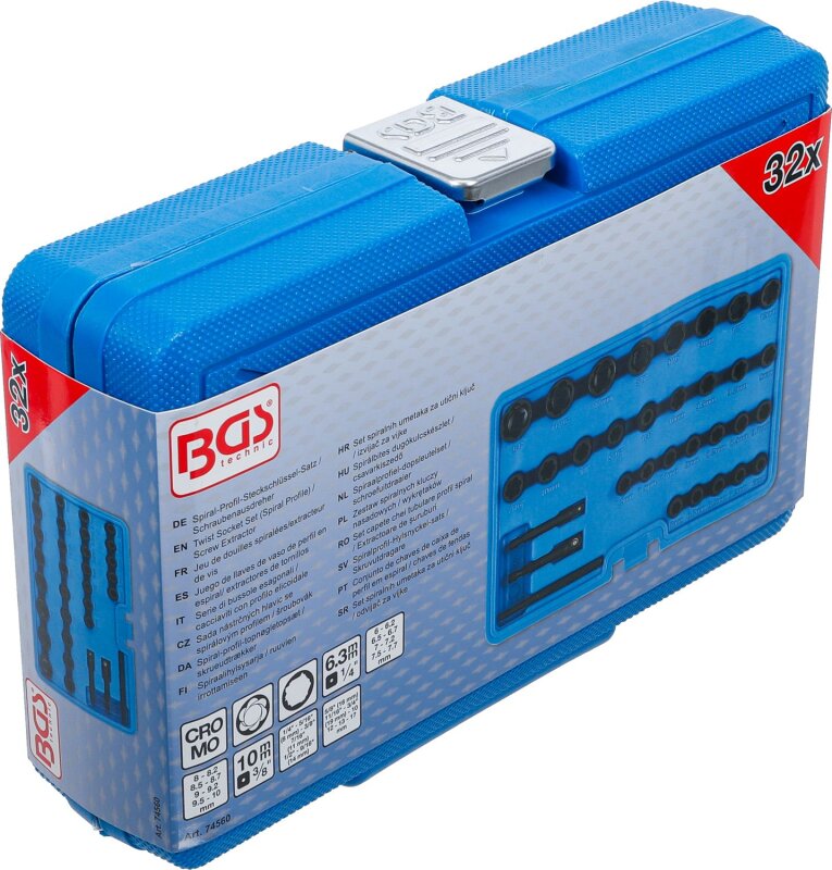 Spiral-Profil-Steckschlüssel-Satz / Schraubenausdreher | Antrieb Innenvierkant 6,3 mm (1/4") / 10 mm (3/8") | Metrisch und Zollgrößen | 32-tlg.