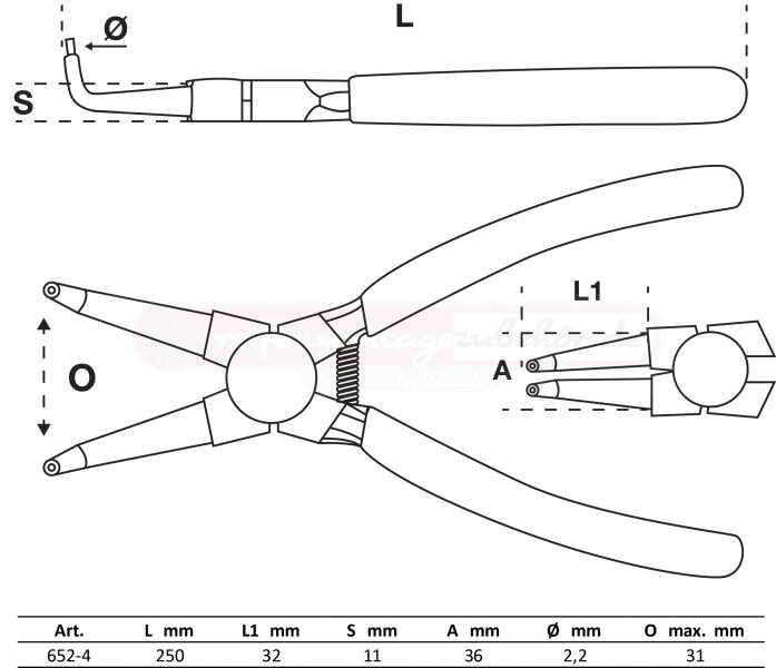 Sprengringzange | abgewinkelt | für Innensprengringe | 250 mm