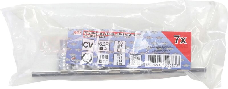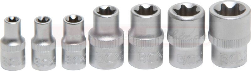 Steckschlüssel-Einsatz-Satz E-Profil | Antrieb Innenvierkant 6,3 mm (1/4") / 10 mm (3/8") | SW E6 - E16 | 7 tlg.
